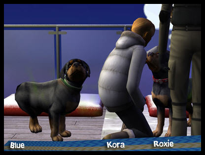 Jazz: Well Blue and Roxie get along now, so Freddy isn't needed. And we want them to have more puppies so we can get a lot of rotties out in Prosperity Point.
