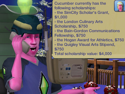 Good luck. I got to 46 with a CAS adult before she borked. It's annoying but fine. I have a teen that rolled that up. And wouldn't you know, she brought home a two-bolter the next day. *shakes head* But great job on the scholarships! The only kids I've had with scholarships like that are my knowledge sims. Romaine is so cute!