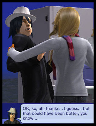 Go Monica!!! Someone really needed to show Venice the door. I recently put Venice's family in as townies in my own game and I find myself judging her already based on this blog even though she's walked by one house so far. And that sure was some honeymoon they went on!