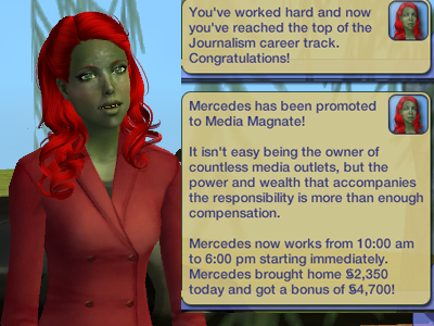 Rachel: Nice job Mercedes! First day back at work and you're all ready getting promoted!